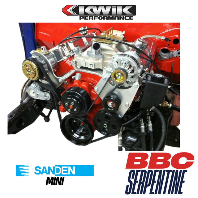 Big Block serpentine AC-Alt/PS upgrade system (“mini” AC compressor).