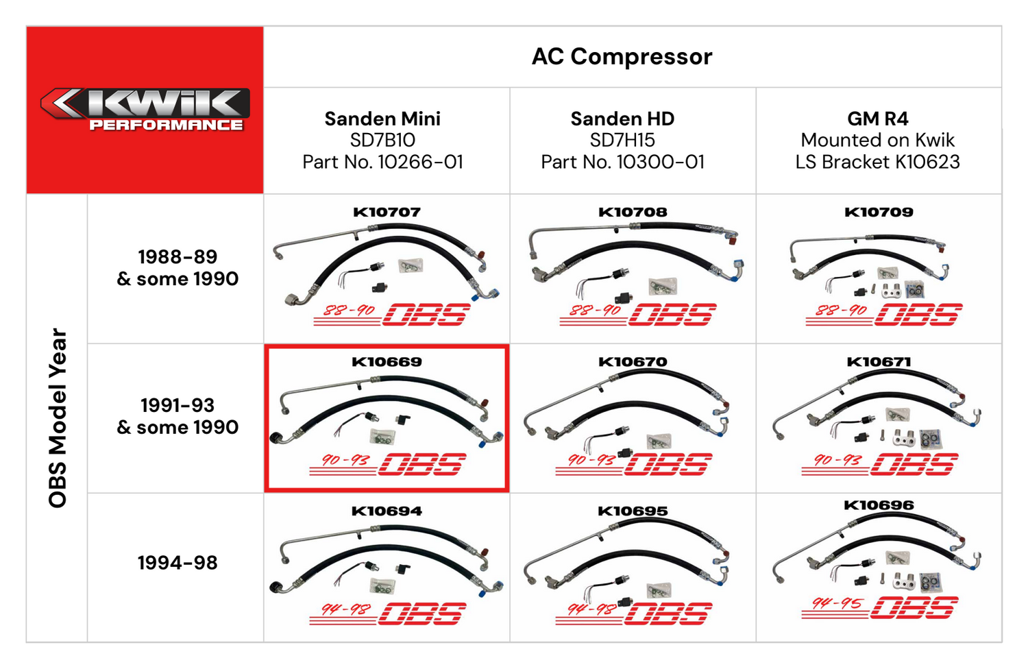 AC Hose Kit (90-93) OBS Chevy - Sanden Mini - K10669 is backordered and will ship as soon as it is back in stock.