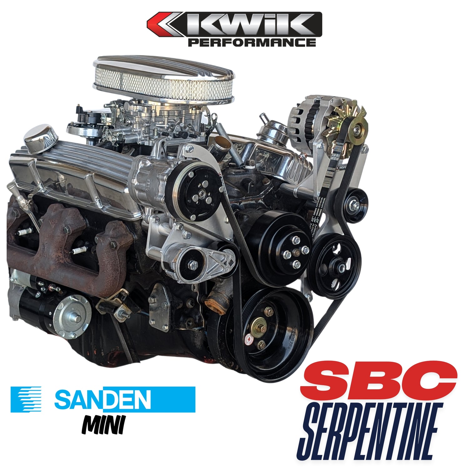 Whether you are upgrading your old v-belt system or starting with a fresh build, our SBC serpentine package delivers performance and value. Our philosophy is to design our systems around accessories that are easily found in any parts store.